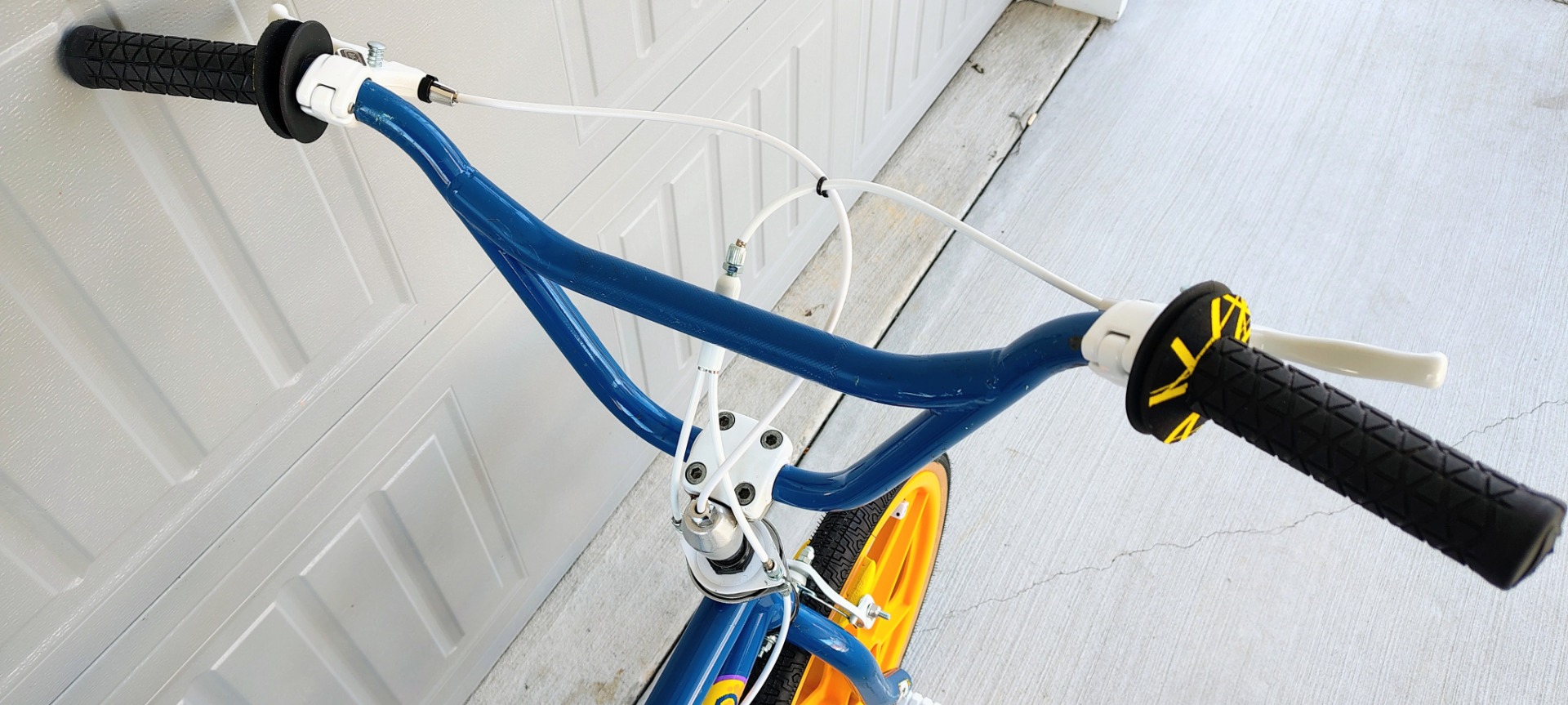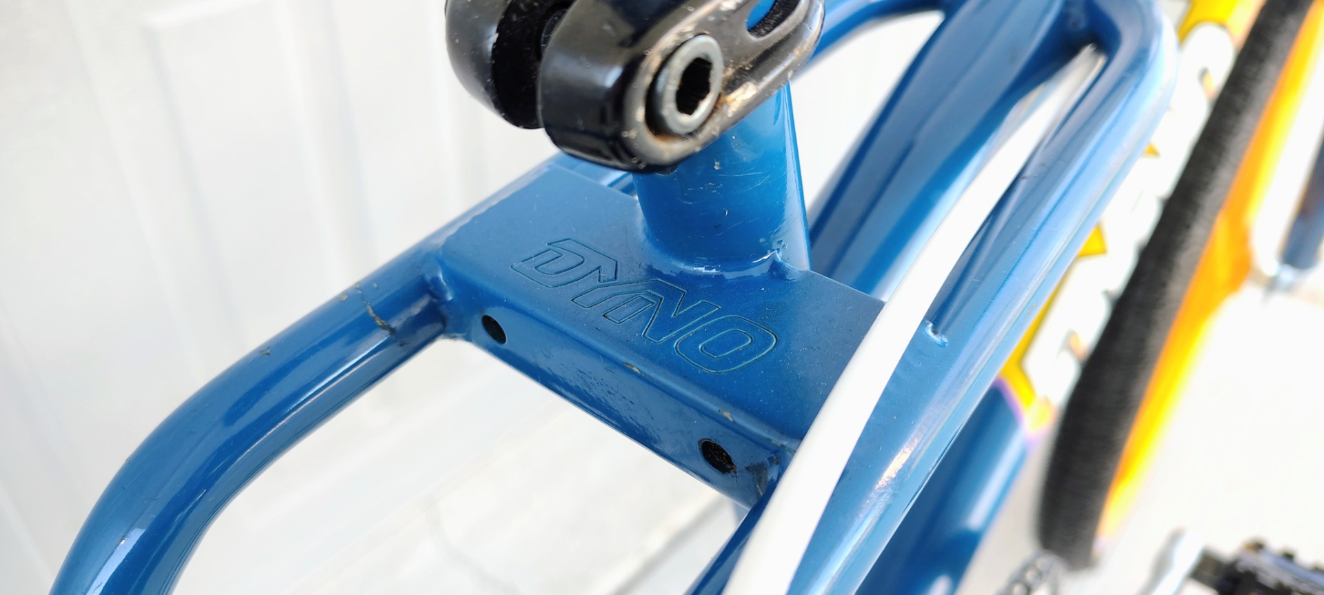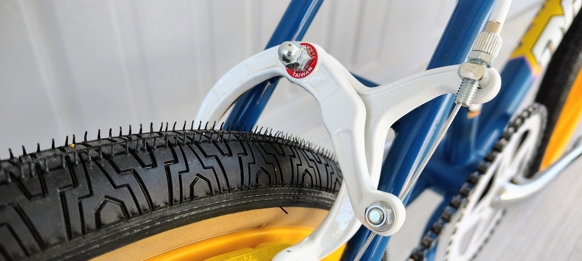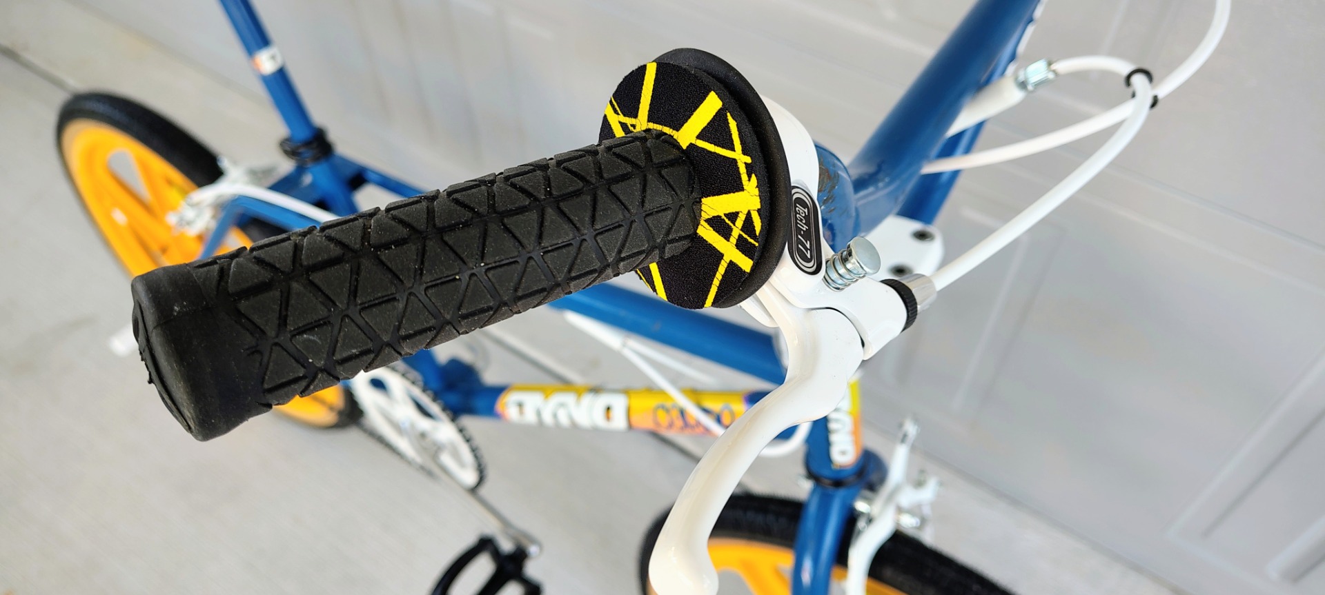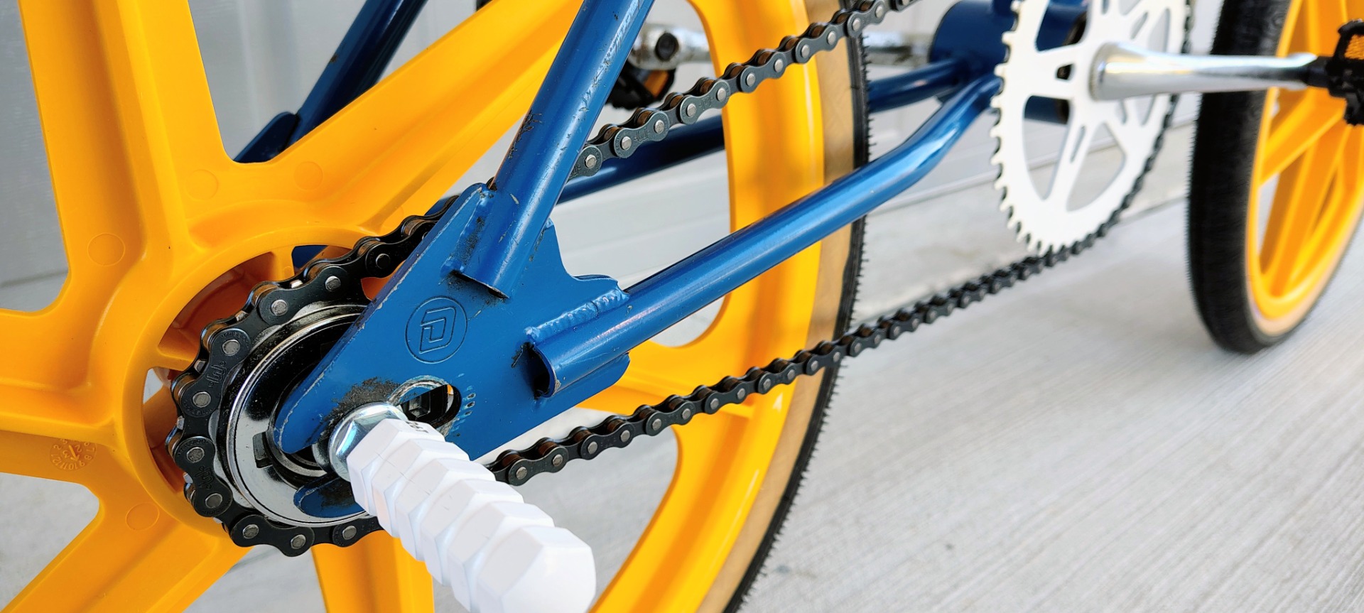 Original frame , fork, bars, paint and decals. NEW Tech 77 locking levers, repop calipers, Odyssey Gyro, brake cables, Kool Stop pads, Skyways, tubes, Panaracers, Skyway style pegs, repop Dyno seat and A'ME grips. Wellgo pedals, ACS freewheel and grip donuts .