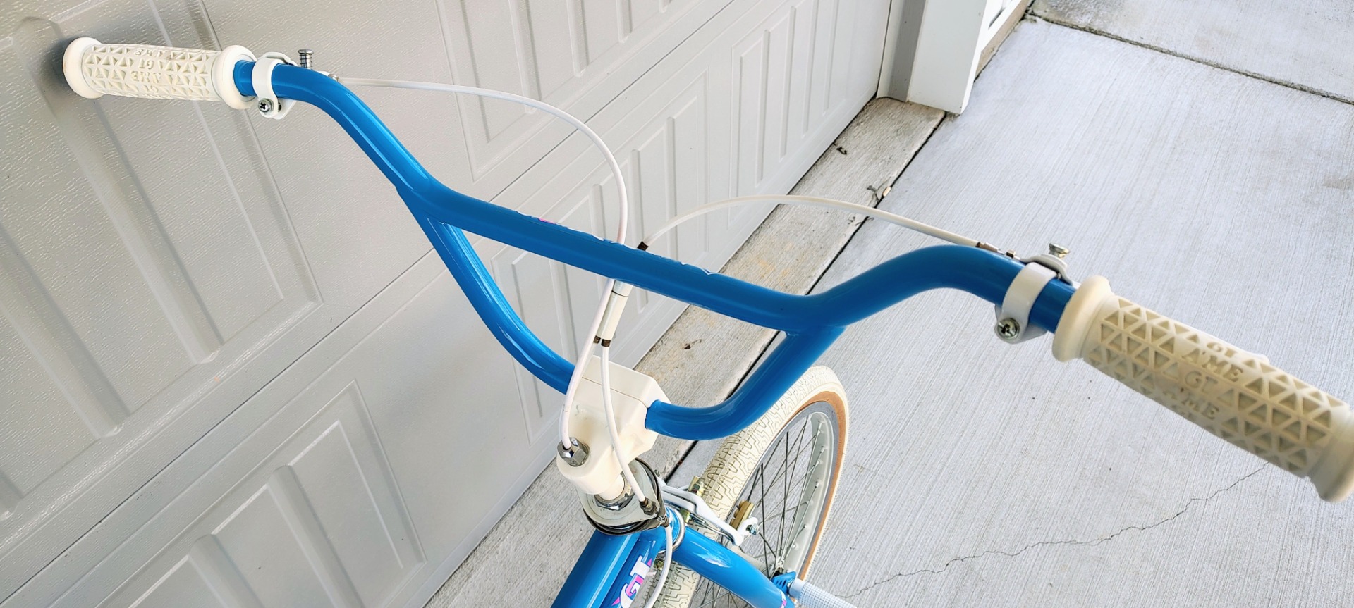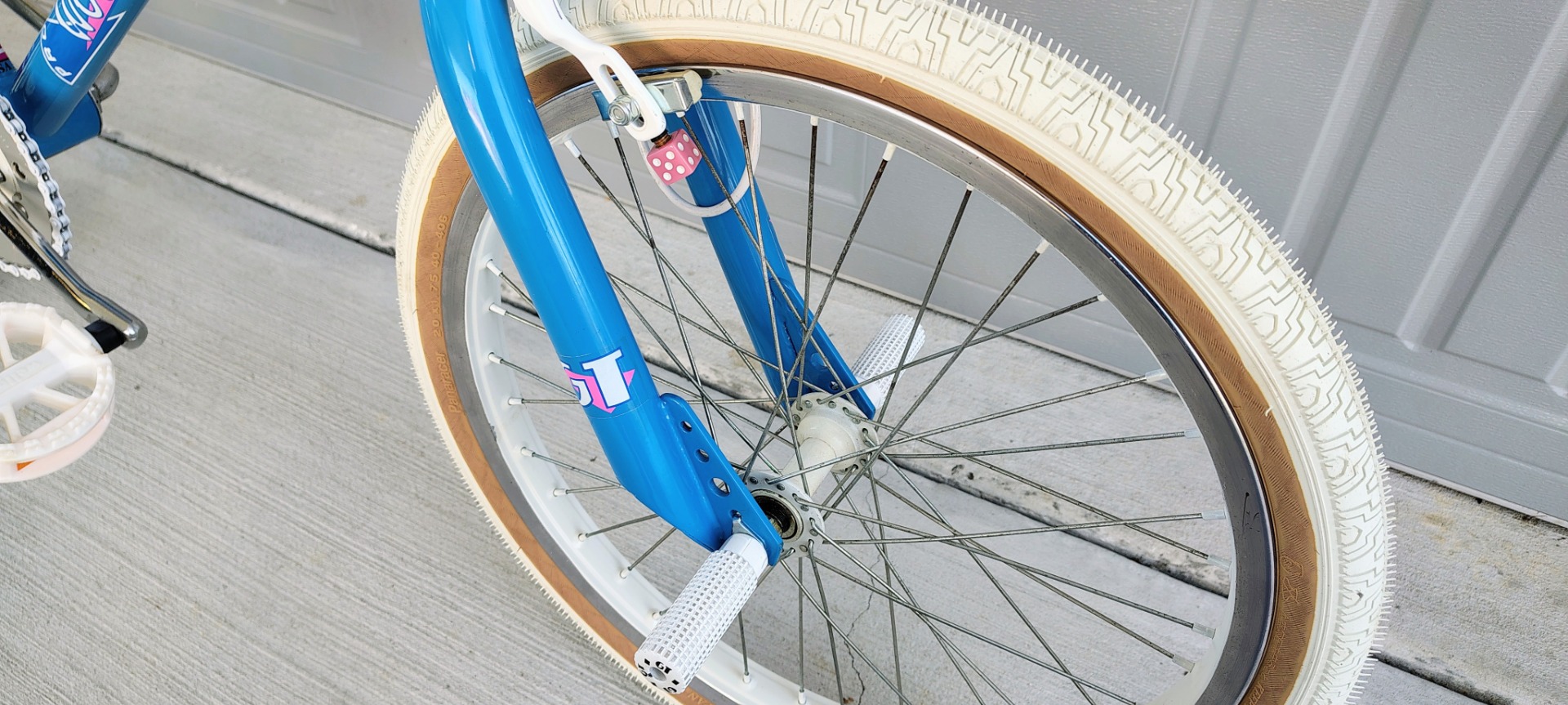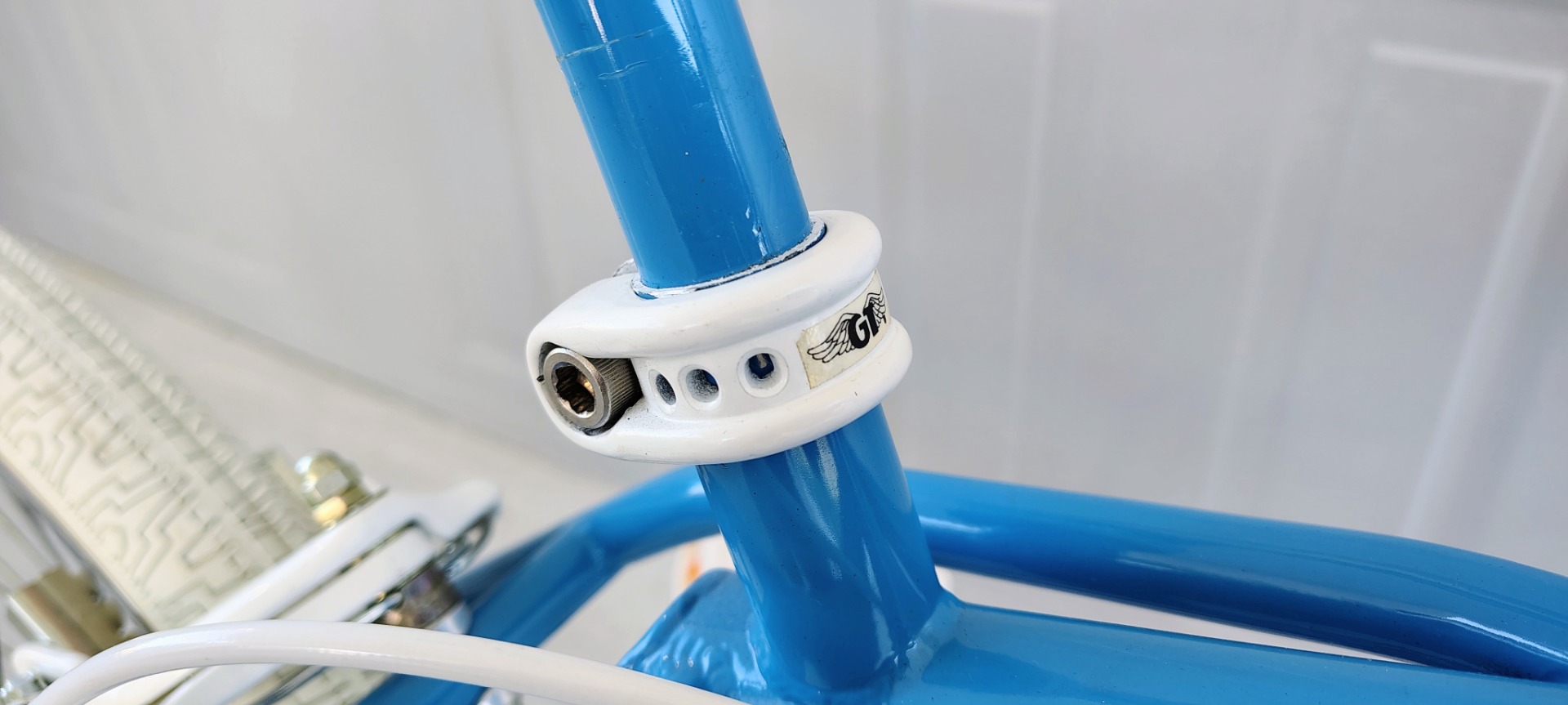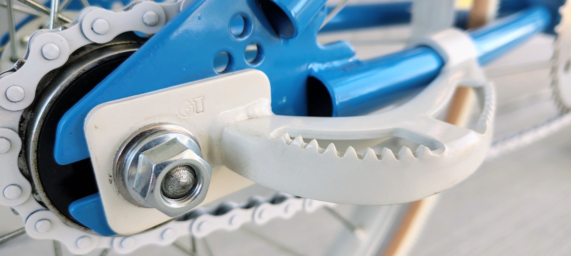 First and foremost : this is a Performer, not a World Tour. Original frame and bars. Repop forks. Fresh powdercoat and new "World Tour" decals. NOS GT anatomical A'ME Grips. NOS Wellgo lollipop pedals. Original Viscount GT 2169 seat, clone UKAI wheels, stamped GT rear standers, stamped two piece GT chainring, NEW Panaracers, OG GT mallet stem ( powdered ), OG one piece GT Power Series cranks, NOS Dia Compe 128 locking levers, Dia Compe calipers, Repop GT pegs.